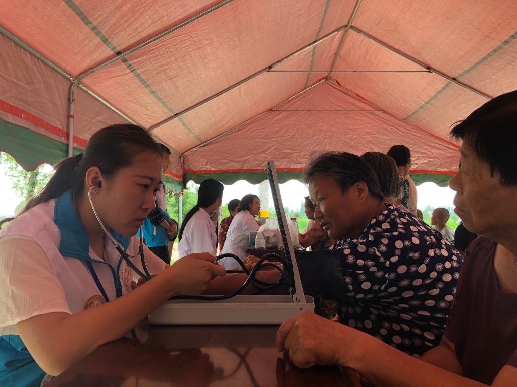 志愿者对村民们进行测血压,专家教授听诊并用丰富的临床经验提出健康指导。面对村民的询问,老师同学们耐心解答。同时,健康宣教组的志愿者针对颈肩腰腿痛、传染病预防、意外伤害的急救进行宣传,对留守儿童普及正确的刷牙洗手方法,利用生动有趣的图片和现场示范的方法让健康知识深入人心。
