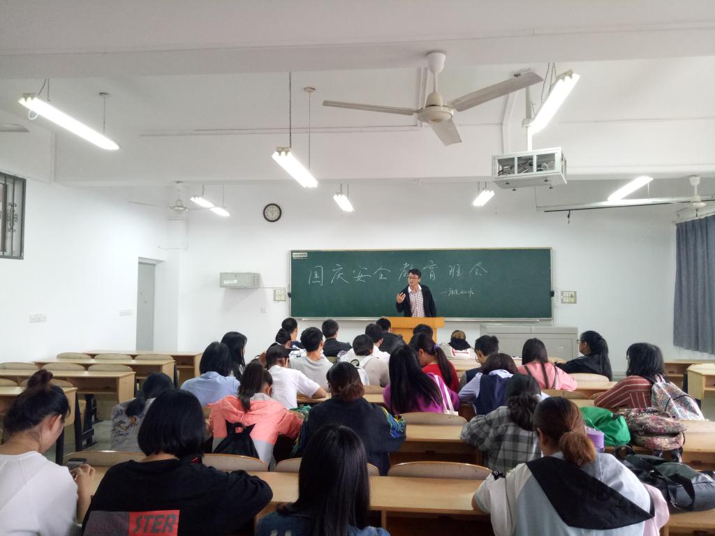 护理学1602班9月27日在3栋206教室开展了安全教育主题班会。国庆长假来临,安全问题不容忽视。班长黄钦鑫同学分别从人身、财产、交通出行等方面讲解了假期安全知识的重要性,从真实案例出发对同学们进行了安全教育。班级同学承诺假期结伴出行,随时和他人保持联系,时刻注意自身安全。通过此次主题班会,同学们学习了相关知识,进一步增强了学生的安全意识和自我保护意识。