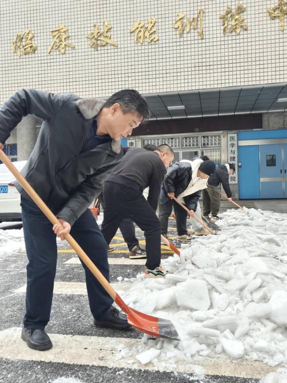 学院师生团结奋战,用心用情“为师生办实事”,既为广大师生开辟出安全通道,保证了师生出入安全,师生同心除冰雪的一幅幅暖人画面,也给寒冷的天气带来了浓浓暖意。