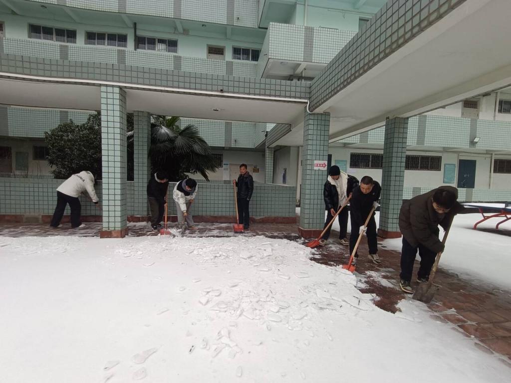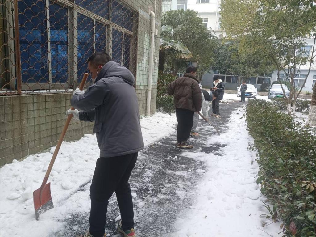 为确保开学返校工作的正常进行,确保师生出入安全,深入开展美好环境与文明校园共同缔造,贯彻落实关于新一轮低温雨雪冰冻天气防范应对工作部署会议精神,2月24日上午,我院党委书记陈汉想带领全体辅导员和提前返校的学生干部,全力以赴参与到铲冰除雪保畅通攻坚战中,在东校区和常青公寓开辟出学生上学的“平安路”“暖心路”。